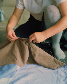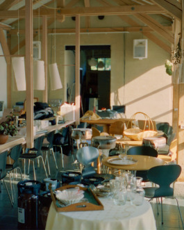 The cushions and textiles for the restaurant Alle Tiders in Vesterbro were created with the intention of evoking a tactile and "homely" atmosphere. All the cushions and textiles are made from old damask tablecloths, where the visible seams provide a rustic and personal touch, contributing to an authentic and welcoming ambiance in the space.