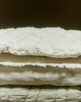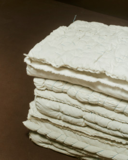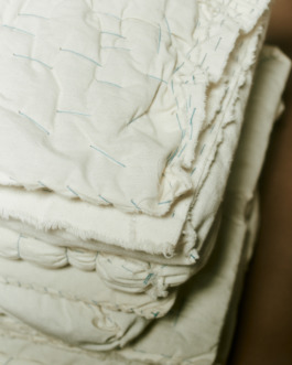 Ella is the first exploration of eelgrass used as an alternative upholstery material in a furniture context. Through the stacking of the cushions, an immediate and easily readable collection of objects emerges, speaking to the viewer through its tactility and honesty. Prior to the work, a thorough examination of various sewing techniques formed the basis of the design. The quality of quilting, sewing, and embroidery has been explored through small experiments, which lay the foundation for an approach that adds ornamentation without it losing its constructive function.